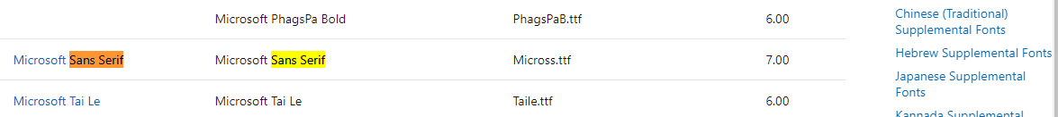 The documentation provides useful information such as, for example, that the ‘SansSerif’ font for Windows 10 is contained in the ‘micross.ttf’ file: