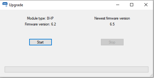 4. After clicking the 'Start' button, the module will enter the 'bootloader' mode (the 'ON' and 'COMM' LEDs flash alternately), and then it will restart with the installed firmware version.