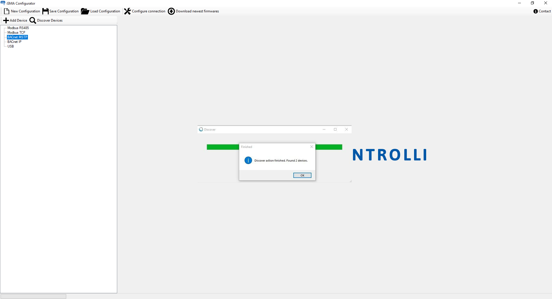 I/O Modules - iSMA Configurator - BACnet MS/TP - Automatic device search