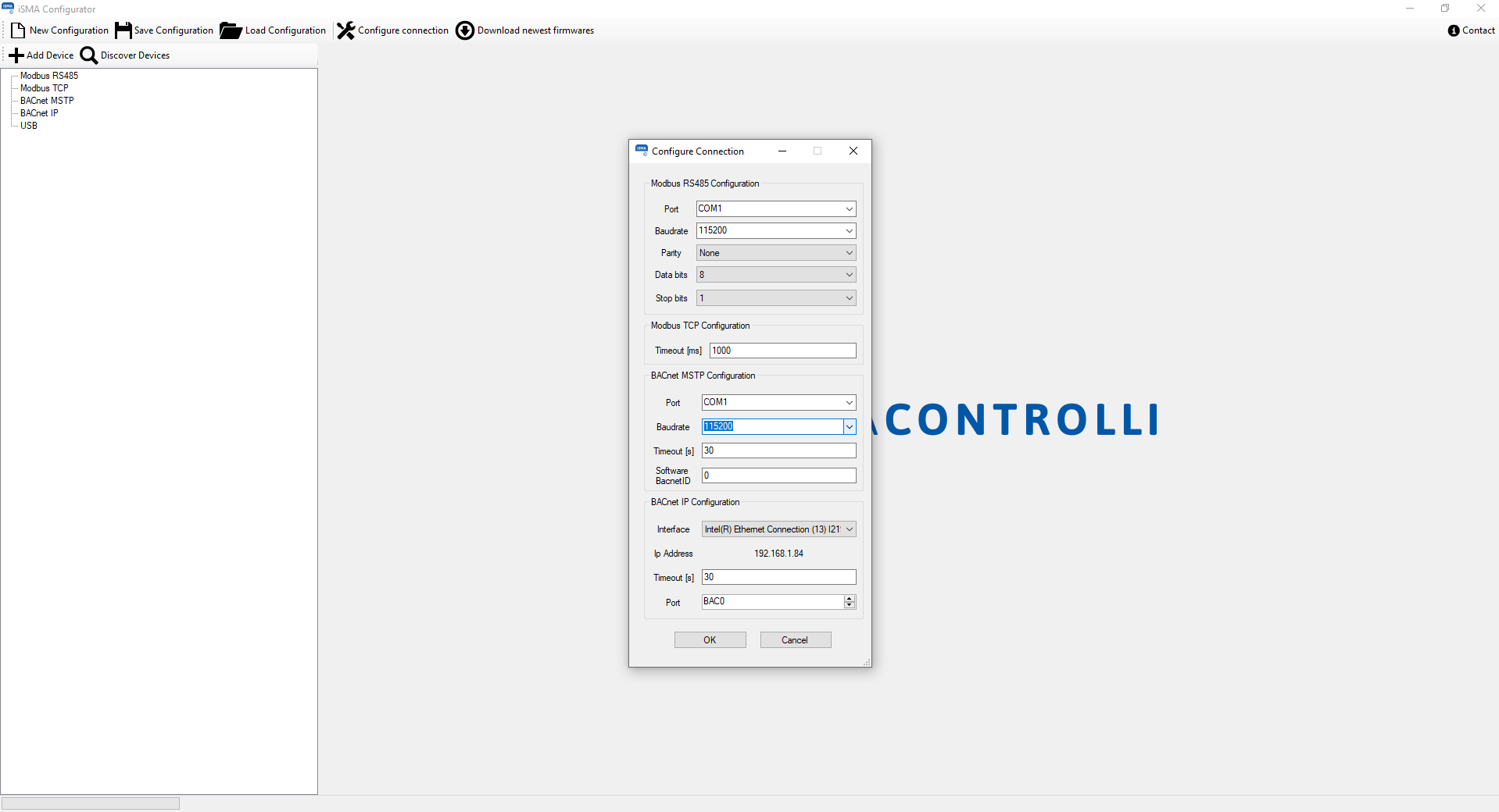 The following article describes how to automatically search for multiprotocol I/O modules in iSMA Configurator using BACnet MS/TP protocol. Before starting the search, prepare a PC with a Windows operating system, a USB - RS485 converter and download iSMA_Configurator from iSMA CONTROLLI Download Center.