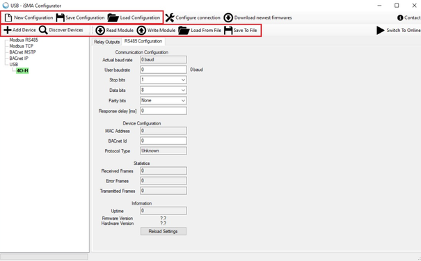 I/O Modules - iSMA Configurator - Connecting with the module, reading and saving values