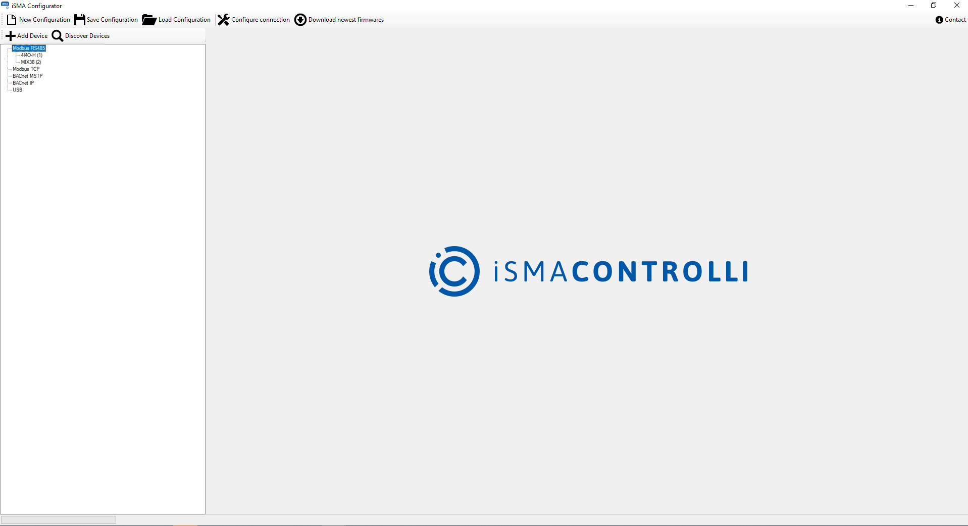 The following article describes how to automatically search for multiprotocol I/O modules in iSMA Configurator using Modbus RTU protocol. Before starting the search, prepare a PC with a Windows operating system, a USB - RS485 converter and download the iSMA Configurator program from iSMA CONTROLLI Download Center.