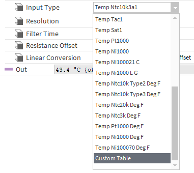 3. Then, under the ‘Linear Conversion’ slot, a tabular ‘Custom Table’ slot appears, with a single ‘Point 0’ row.