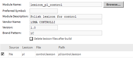 7. Then (for the iSMA-B-MAC36NL controller), in the Software Manager, install the new compiled module with lexicons in the platform.
