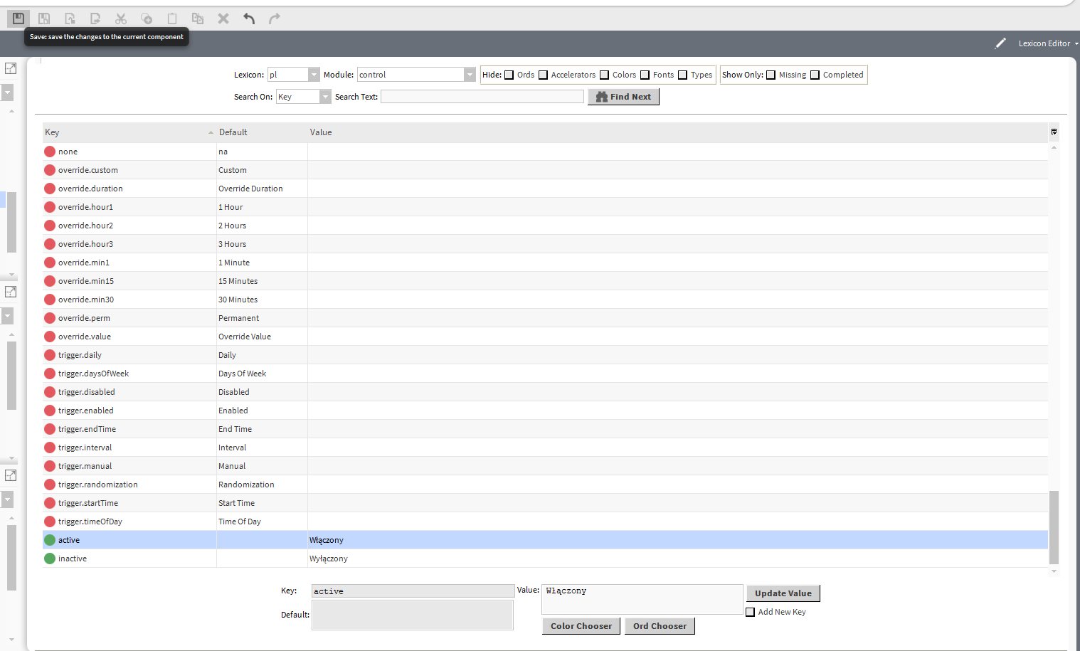 1. Change the "displayName" value of the component (e.g., "BooleanWritable10") to the reference to one of the lexicon's keys using the "BFormat" standard (in the described example, it is "%lexicon(control:active)%").