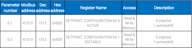 Configuration registers of the room panel are described in chapter 9 of the User Manual. For example, to edit access to the temperature setpoint, it is required to change the bit 1 value in the 41513 Modbus register: