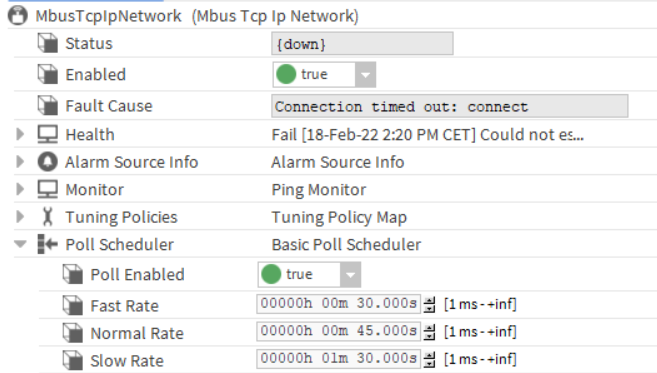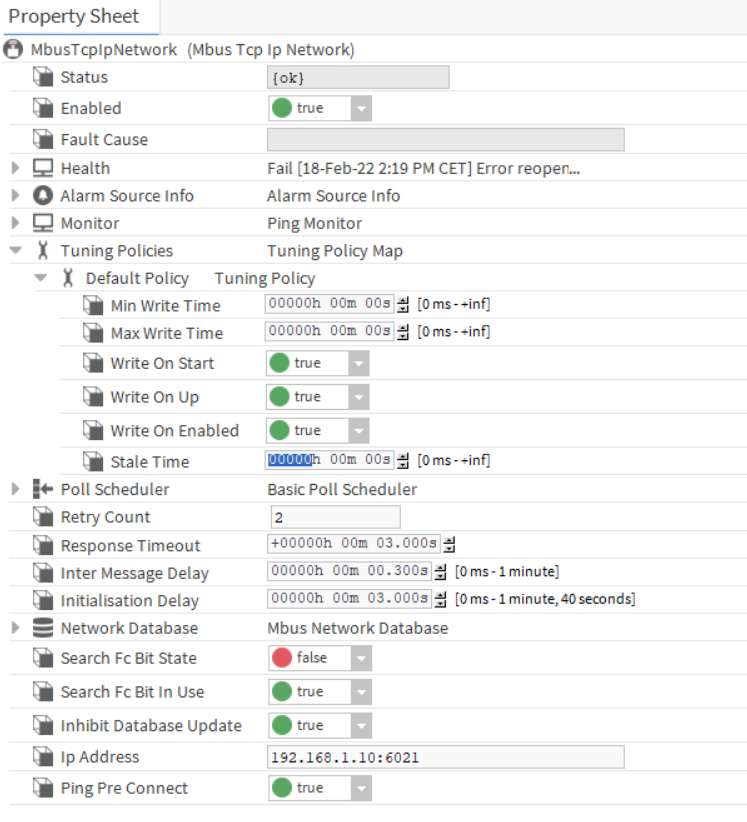 The MG-IP module with M-Bus meters connected communicates with the controller, for example, in Niagara. After discovering of points, all of them are in the Stale state. This status means that the point has not been updated for a prolonged time and its data is outdated. It may occur because of problems with communication such as interruptions or an incorrect connection of the bus.
