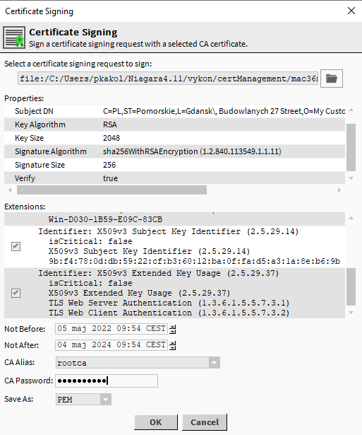 Niagara - Certificates - Creating and signing certificates of devices