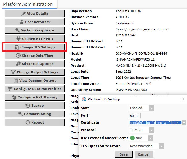 In the platform, go to Platform Administration and click Change TLS Settings and in the popup window change the tridium certificate to the custom one. This will make connecting to the platform using a digitally signed certificate.