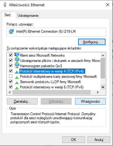 Picture 1. View of the connection properties via Ethernet on the PC.