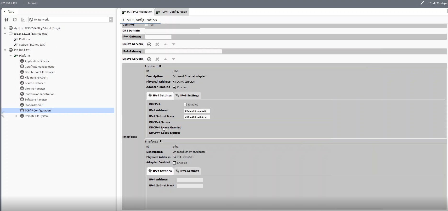 Picture 5. 'Interfaces' section of the 'TCP / IP Configuration' view after the changes made to Niagara devices.