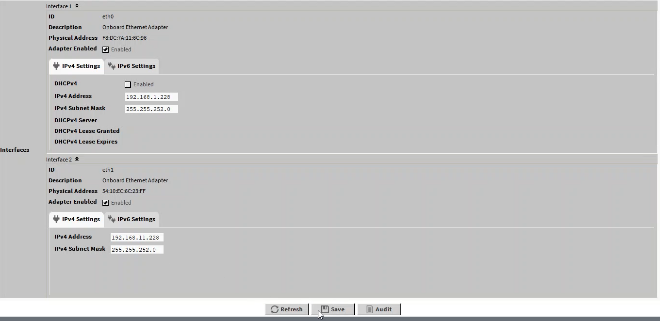 3. Choose 'Interfaces' and clicking on the arrows icon, expand them. To activate the port, check the box next to 'Adapter Enabled'.