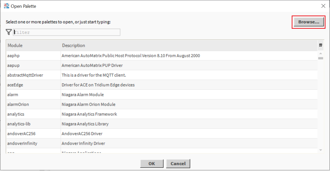 3. To open your palette, press the folder icon in the 'Palette' window, a pop-up window will appear, click 'Browse ...'.