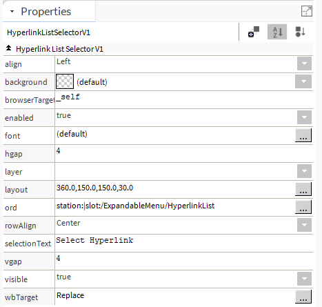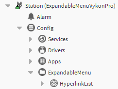 Use the HyperlinkList component from the VykonPro module in the util folder. Place the component in the station; to keep the station’s view clear, it can be located as below: