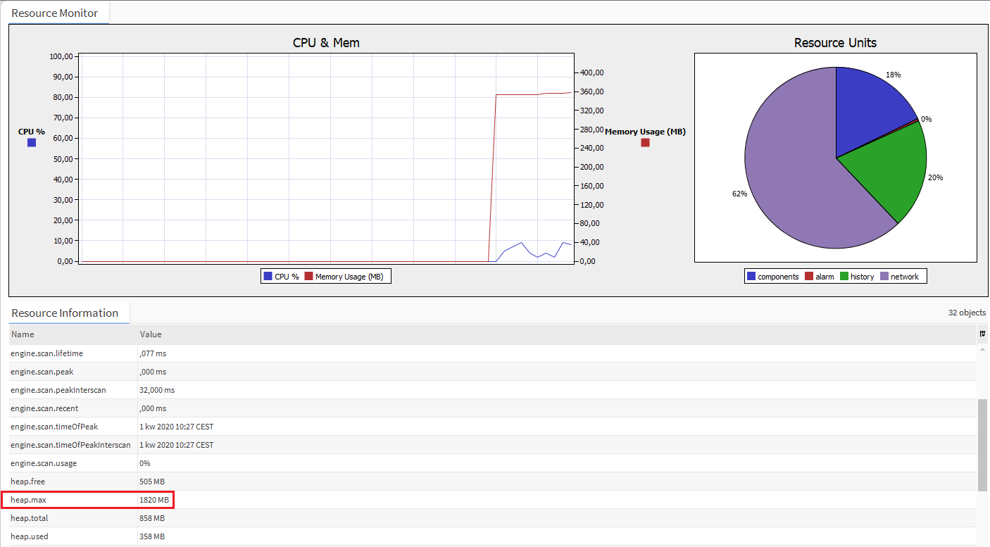 The Niagara Supervisor is installed on a PC or device with more resources than the iSMA-B-MAC36NL or JACE-8000 controllers. However, with the default settings, a limited amount is made available in the nre.properties file. The default value for the maximum JAVA memory stack for stations on the Niagara N4 is 256M, or 256 MB. In some cases, this value is too low and Workbench will freeze after reaching the maximum value or may display a java.lang.OutOfMemoryError error. Such an event is triggered when the station is large in size or a lot of historical data is collected. In addition, with such stations, this error can occur when the user uses ProgramService or switches between different visualization graphics. This article shows the procedure for editing these settings.