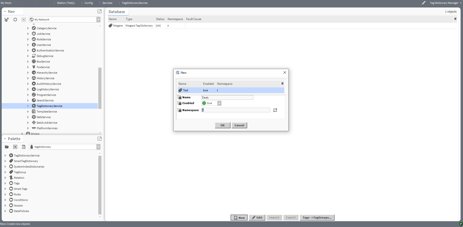 The first step is to open the tagdictionary palette and add the TagDictionaryService service to the Services station.
