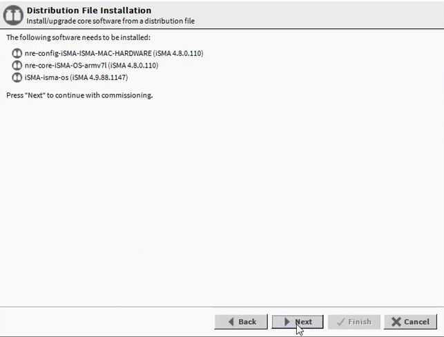 Note: No additional dialog window in the Commissioning Wizard means that the controller has the current version of the system component, and there is no need before an update– the Commissioning Wizard process can be freely cancelled.