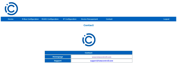 This page displays information about the Manufacture’s website and e-mail to technical support.
