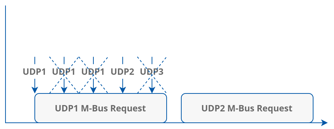 The device simultaneously supports up to 2 M-Bus UDP clients. In order not to miss the second client’s packet delivery at high intensity periods of incoming data, the data from the first client is read from the lwIP in the loop, and only two frames are buffered with different addresses. The response via the UDP protocol is sent to the same port it came from (the default port for UDP protocol is 10002).