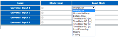 - Block Input (read/write): allows for blocking a particular input (except for heating/cooling modes);