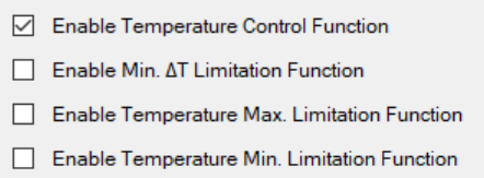 enabling the temperature loop functions (Temperature Loop tab). The sections inside this tab are enabled based on the Enabled function;