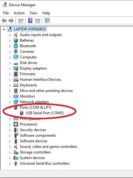 Select the Ports (COM and LPT) field to check the serial port number, which the serial converter is connected to (COM5 in the example below).