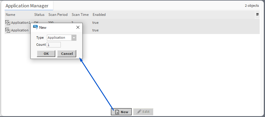The Application Manager view is also automatically opened if the Applications container is double-clicked in the nav tree window.