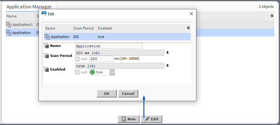 The Application Manager is a special view that allows to manage the Application components added to the Applications container.