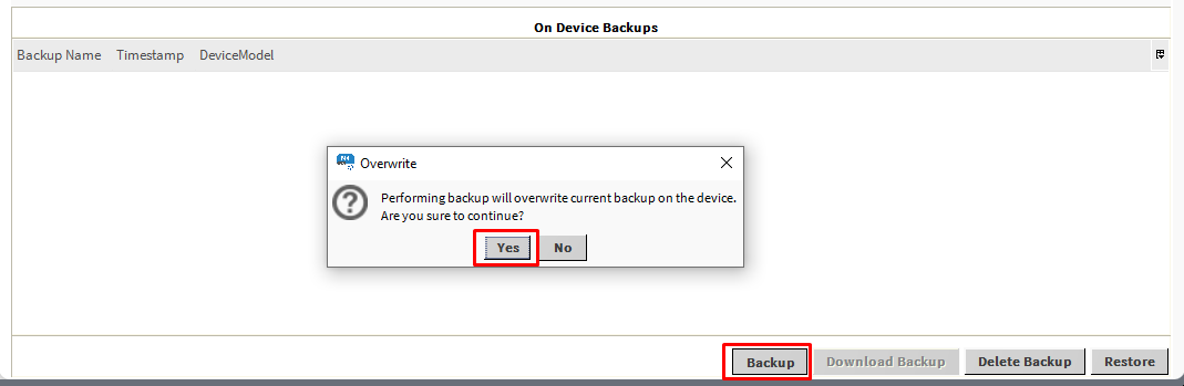 If there is any existing backup on the device, performing the backup action will overwrite it.