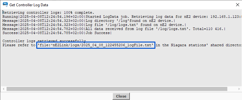 In the final step, a confirmation window is displayed with the status of the task and indication of the location of the saved log file.