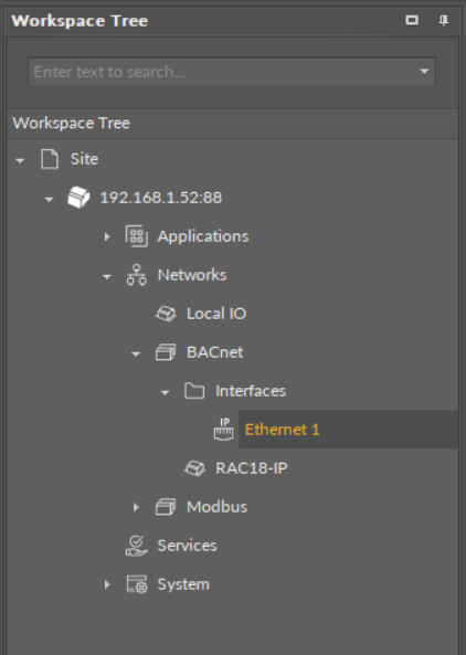 The Ethernet component allows to activate the BACnet IP or Modbus TCP/IP communication and to identify the port adapter and the number for the BACnet or Modbus network. The Ethernet component allows to identify the IP port number for BACnet or Modbus communication (by default, it is 47808 for BACnet IP and 502 for Modbus TCP/IP). It can be changed to any number from the slot's range (0-65535).