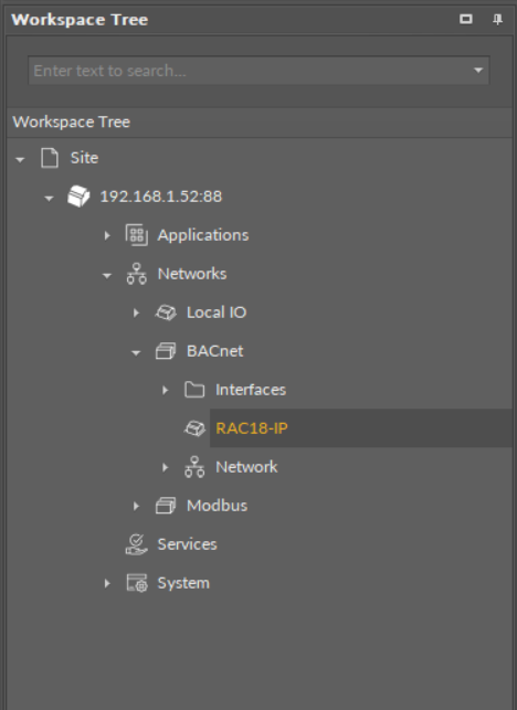 The LocalDevice component is automatically added and placed under its superior component, the BACnet, and it cannot be removed from the device.