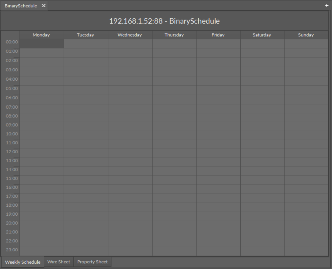 Events in the BinarySchedule component are added in the Weekly Schedule view, which is automatically opened upon double-clicking of the component.