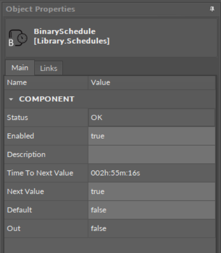 Out: indicated the current value of the schedule (sourced from the event or default).