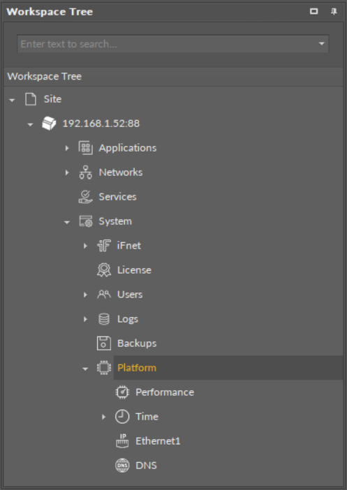 Additionally, the Platform components has also three component's extensions: Performance, Time, Ethernet, and DNS.