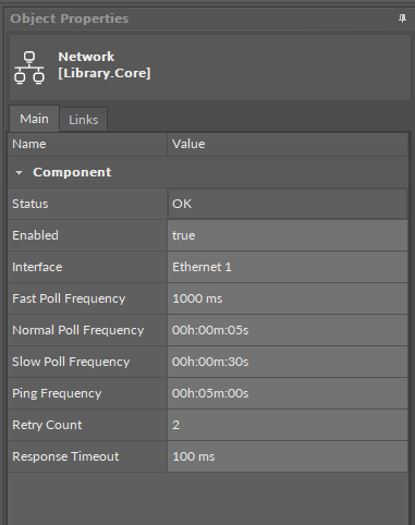 The Network component allows to configure the BACnet (IP or MS/TP) or Modbus (TCP/IP or RTU) client network. It allows to add remote devices (using the Device component) and configure basic polling schedule for such devices and their points.