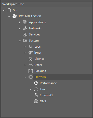 Additionally, the Platform components has also three component's extensions: Performance, Time, Ethernet, and DNS.