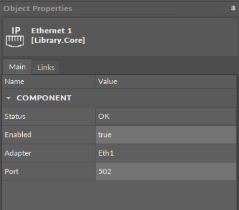 - Status: indicates the current status of the component. If the component works properly, its status is OK; the component's status becomes Disabled if its Enabled slot has been set to false.