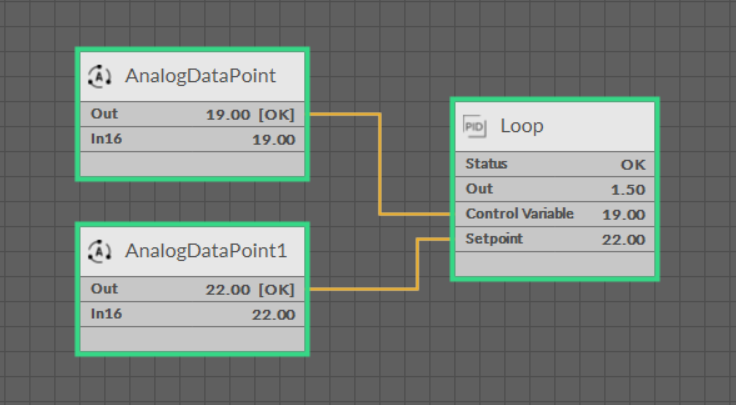 The Loop component allows to configure a signal control loop–it allows to adjust the output value in order to reach the setpoint value comparing it with the current input value (measurement). The output value is estimated based on a proportional-integral-derivative mechanism. The Loop component may be configured as P-only, PI, or PID.