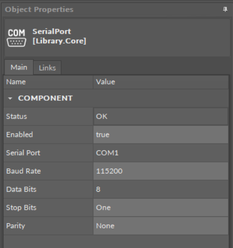 - Status: indicates the current status of the component. If the component works properly, its status is OK; the component's status becomes Disabled if its Enabled slot has been set to false.