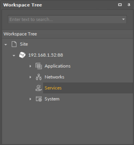 The Services container provides a space for additional services developed to enhance the device's functionalities. Services may be added to the device and then used within applications. They are designed to provide additional functionalities to the basic algorithms included in applications, allowing the device to communicate with systems superior to building automation systems (including cloud data exchange) .