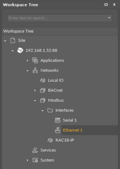 The Ethernet component allows to activate the BACnet IP or Modbus TCP/IP communication and to identify the port adapter and the number for the BACnet or Modbus network. The Ethernet component allows to identify the IP port number for BACnet or Modbus communication (by default, it is 47808 for BACnet IP and 502 for Modbus TCP/IP). It can be changed to any number from the slot's range (0-65535).
