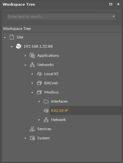 The LocalDevice component is automatically added and placed under its superior component, the Modbus, and it cannot be removed from the device.