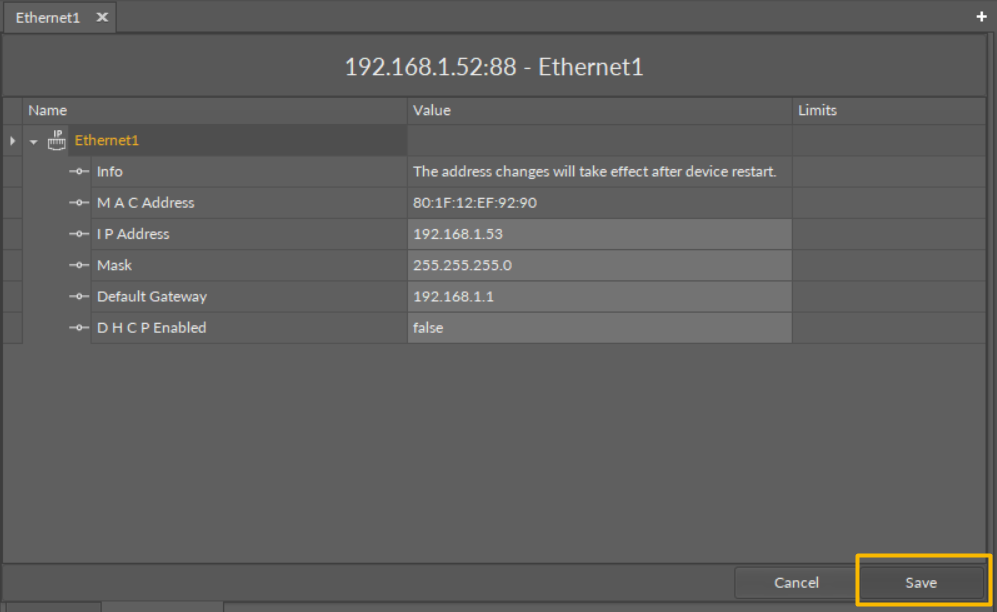 The Ethernet component allows to configure three essential features to connect the controller to the network: IP address, mask, default gateway, and DHCP control; it is the most important component in terms of network configuration.
