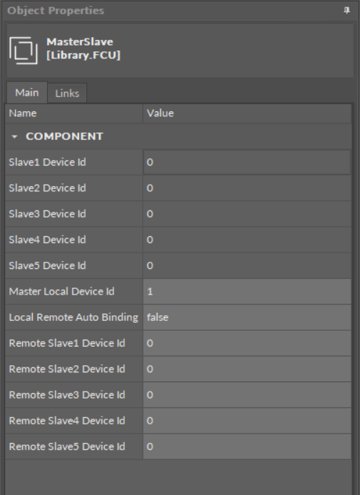 Note: If the component uses the Auto Binding function, the value of the Master Local Device Id slot has to be set to the value ranged from 826101 to 826120. For other values, all output slots (Slave1 Device Id-Slave5 Device Id) will be set to 0.