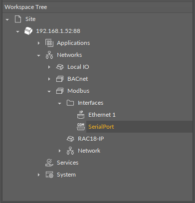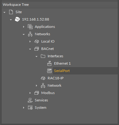 The Serial component allows to configure the BACnet MS/TP or Modbus RTU communication over the RS485 port.
