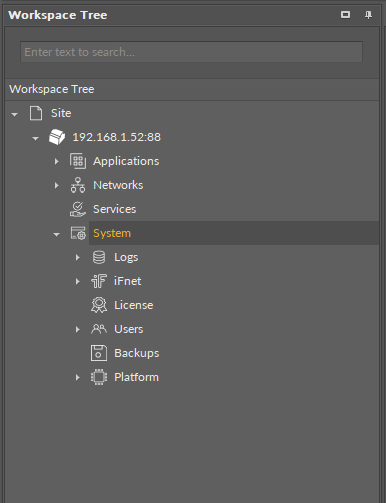 The System container is a starting point to work with the deviceāit is a place to configure the device and connect it to the network. One of the most useful features of the System container is a possibility to set a unique IP address of the device.
