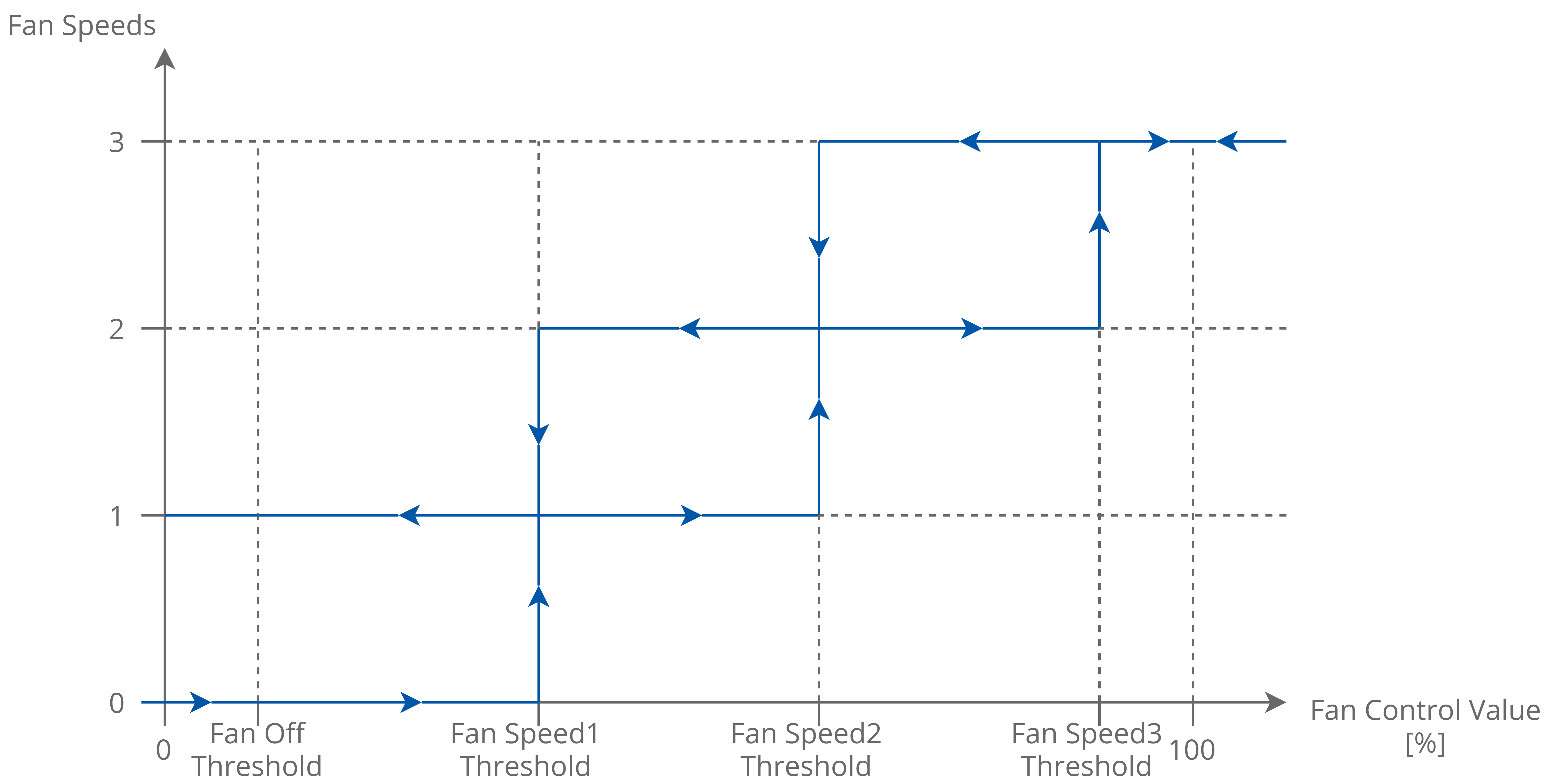 Note: Calculating the fan speeds is based on the internal variable named Fan Control Value. The way of calculating this value is presented by the figure below: