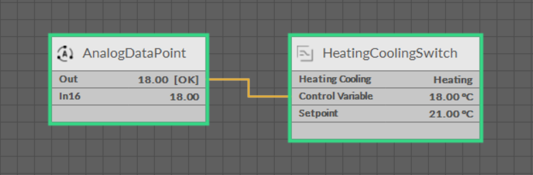 The HeatingCoolingSwitch component allows for switching between heating and cooling temperature modes, depending on the current temperature, the given setpoint, and the occupancy status.