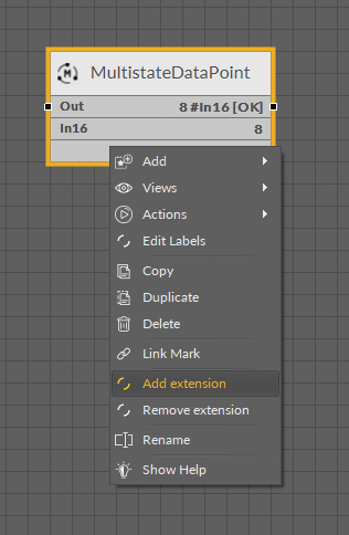Apart from the BACnetMultistatePoint and ModbusMultistatePoint, it is possible to add the following extensions to the MultistateDataPoint: